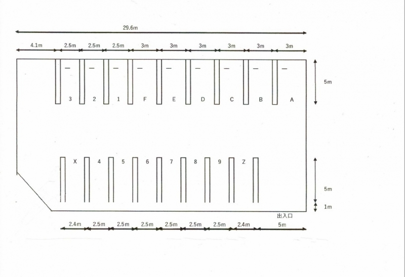 | 備考 | A~F→6500円 1~9→5,000円 XZ→4,000円 洗車場のご使用は+500円 |